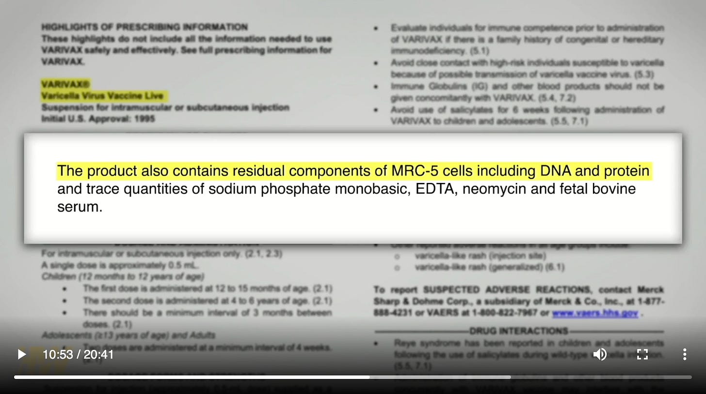 下图是Varivax疫苗的说明书(Packaging Insert),疫苗成分提示包含MRC-5系细胞的DNA和蛋白。那么MRC-5是什么呢?