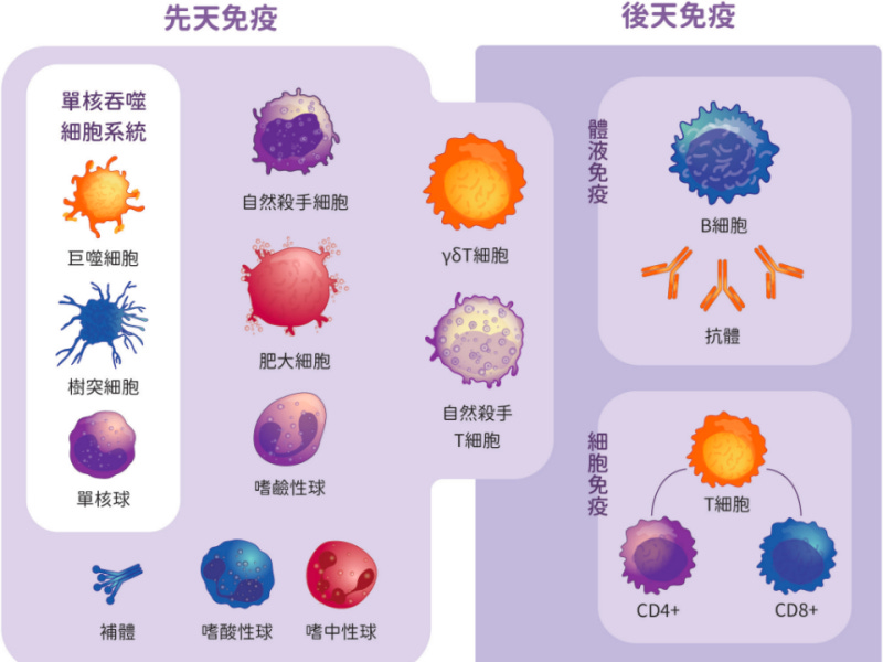 先天免疫力主要在儿童时期发挥作用,等到人体后天免疫系统逐渐完善后,将逐步退出舞台。在先天免疫力的保护下,儿童从最初的“抗体天真”状态,经过一次次地接触病原体,从中训练并获得经验,到最终建立起完善的后天免疫系统。What doesn't kill you makes you stronger. 后天免疫在初次感染某种病原体后产生免疫记忆,并在下一次感染这种病原体时产生更强的抵抗力。与先天免疫系统不同,后天免疫只对特定的病原体做出特异性的反应,可以理解为见过世面、处事得当。