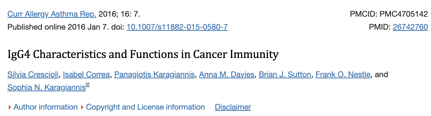 2)IgG4类转换可能导致癌症复发。由于免疫系统依赖抗体的吞噬活性来清除病毒感染或癌细胞等外来细胞,因此削弱这种活性的IgG4类开关可能会使癌细胞增殖。2016年发表在《当前过敏和哮喘报告》的一篇研究指出,由于类别转换,肿瘤进展与IgG4的存在之间不仅存在联系,而且这种联系甚至可能是肿瘤促进和进展所必需的。⬇️