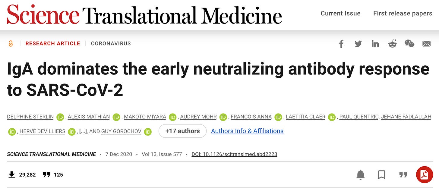 IgA能击败病毒的一个原因是,它是在呼吸道病毒大量繁殖的粘膜中产生的,是Covid中和抗体里的海军陆战队。我们了解到covid mRNA针剂不会刺激IgA的产生,这是针剂无法阻断传播和出现突破性感染的一个重要原因。⬇️
