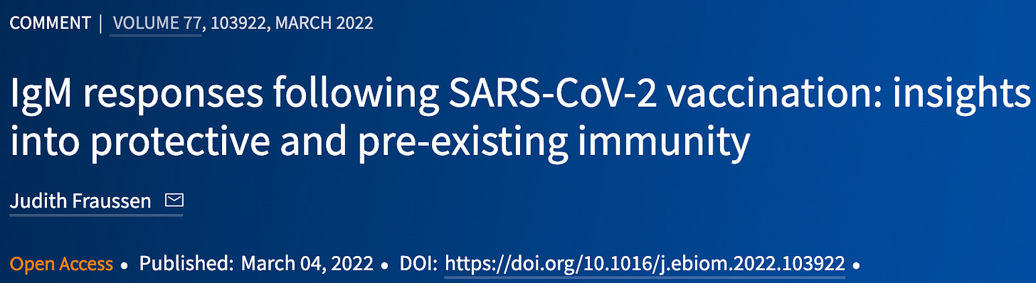 IgM产生于脾脏,是自然感染时最先出现的抗体类型,也是人类抗体中最庞大的队伍,你可以把它看作陆军。但是在接种mRNA针剂后突破感染的实验对象中,出现IgM异常,要么IgM缺席,要么IgM在IgG后产生。⬇️