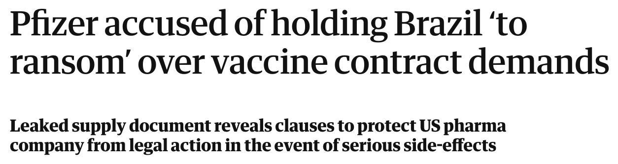 本文从巴西现任和前任总统实行的截然相反的Covid“疫苗”政策入手,披露大药商与各国政府的霸王条款,并分析政府在“疫苗”产业中的角色。下文将称疫苗为为针剂,因为它们既不安全,也不有效,不符合疫苗的定义。