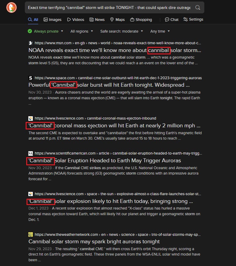 下面,主流媒体对这次太阳风暴的报道开始变得耐人寻味。 几乎所有主流媒体在报道本次太阳风暴时,都使用了一个词-“Cannibal”,说这次太阳风暴是Cannibal Storm,即“食人”风暴。