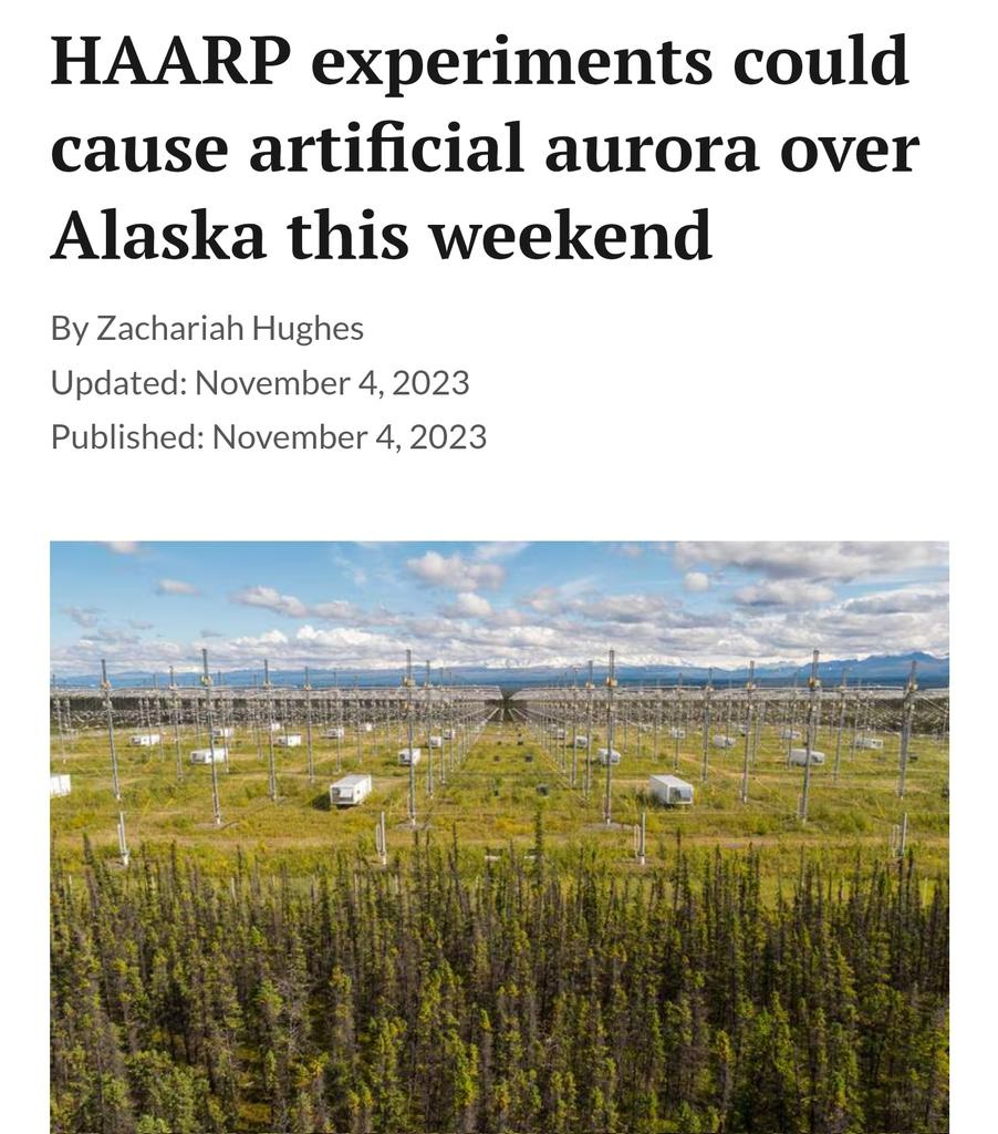此类实验早在半年即2023年11月4日那个周末就做过,是位于Gakona的HAARP实验室进行的为期4天的实验。媒体明确报道,“电离层中的红色或绿色 "气辉 "尽管与极光相似,但却是长达四天的一系列罕见实验的结果 ”。